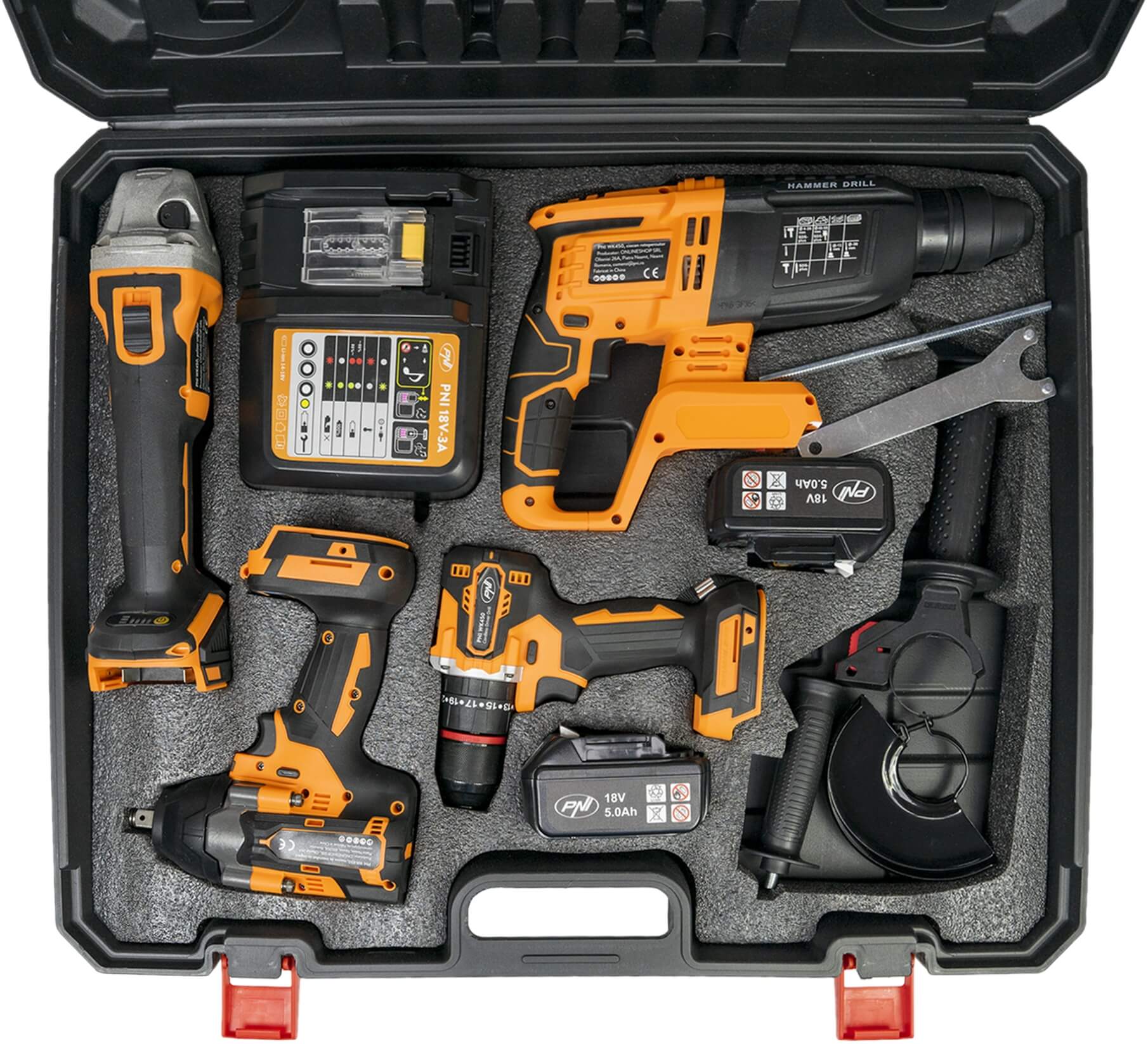 PNI WK450 on monipuolinen akkutyökalusetti, joka sisältää neljä joka kodissa tarvittavaa konetta: akkuporakoneen, iskevän mutterinvääntimen, akkukulmahiomakoneen ja akkuporavasaran. Mukana kaksi 5,0 Ah akkua, pikalaturi ja tukeva salkku. Täydellinen paketti, joka toimii samoilla tutuilla akuilla kuin Makita, Jonköping akkutyökalut. Lue lisää >>