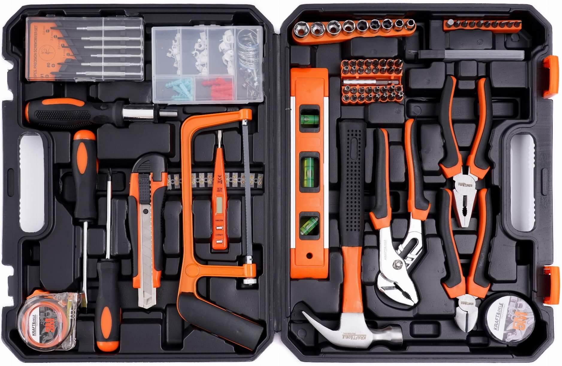 Tukeva muovisalkku pitää työkalut järjestyksessä ja helpottaa kuljetusta paikasta toiseen. Jokaiselle osalle on oma paikkansa, joten sarja pysyy siistinä ja käyttövalmiina. KD10838 on täydellinen valinta harrastajalle, joka haluaa kattavan peruspaketin kaikkiin töihin.